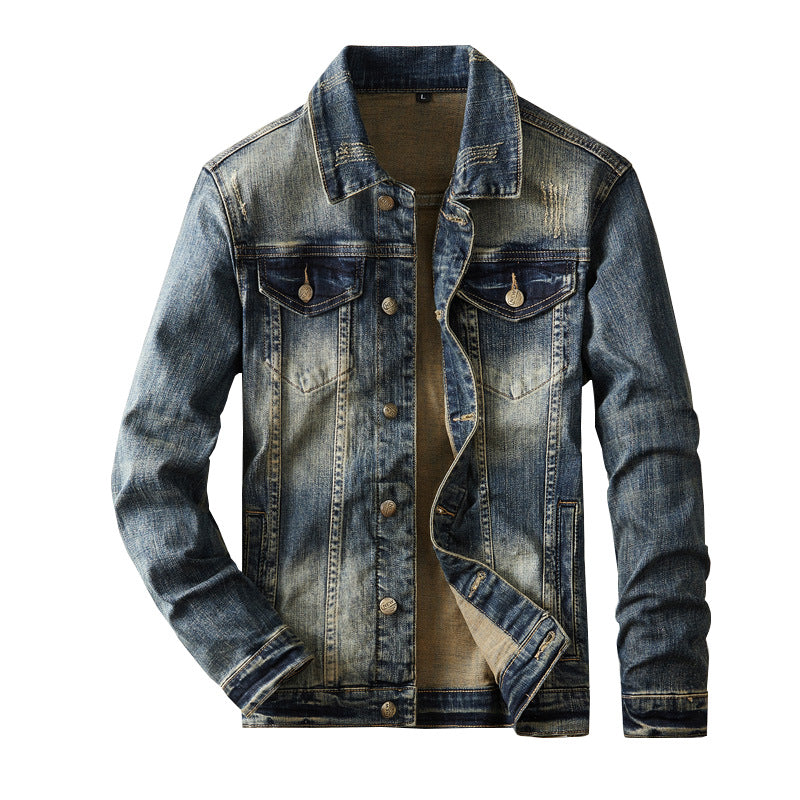 Classic American Style: Timeless denim jacket and pants set inspired by American fashion trends.