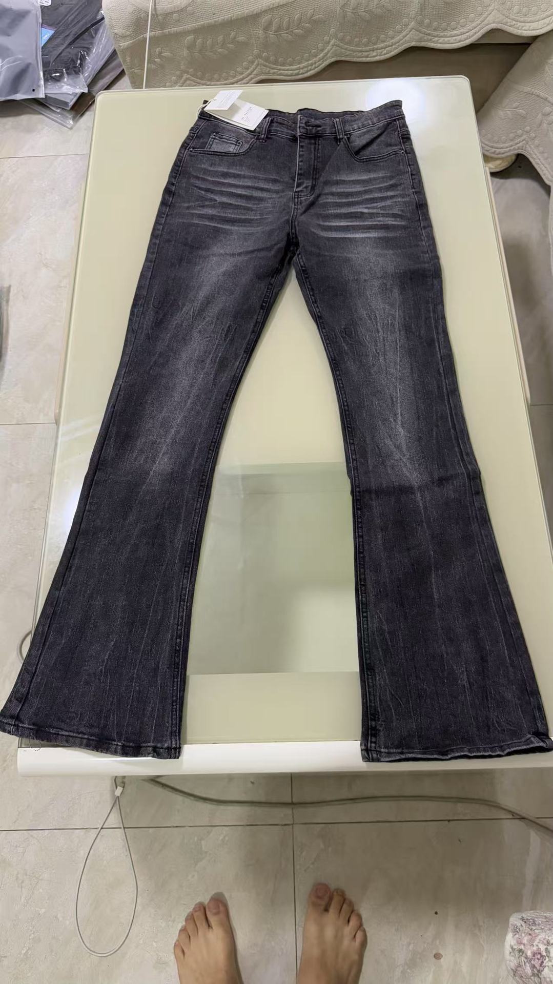 Retro Style: Classic black cow bootcut jeans with a timeless retro aesthetic.