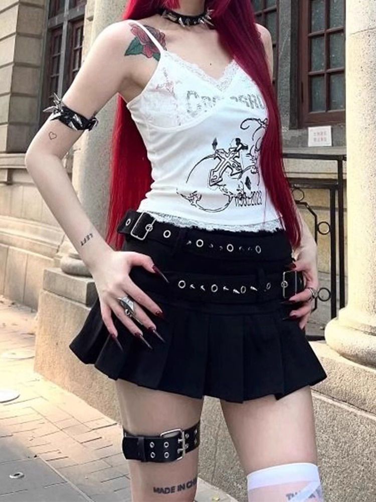 Pleated Skirt: Features stylish pleats for a dynamic and textured appearance.