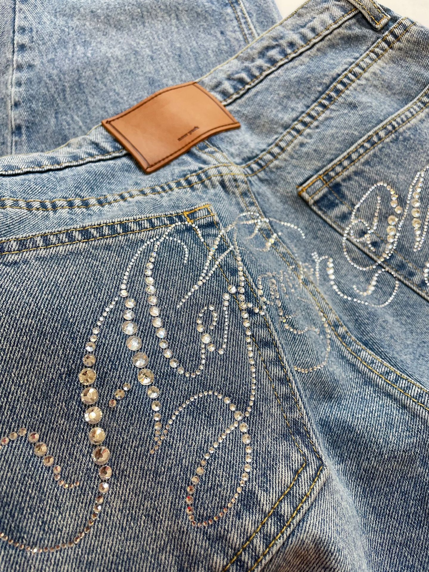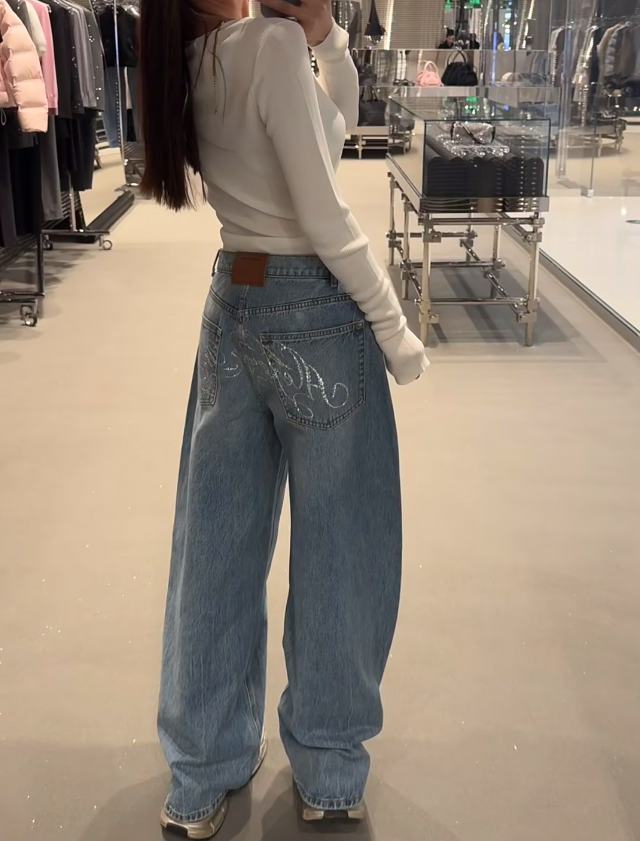 Designer Brand: Retro-inspired wide-leg jeans from a designer brand.