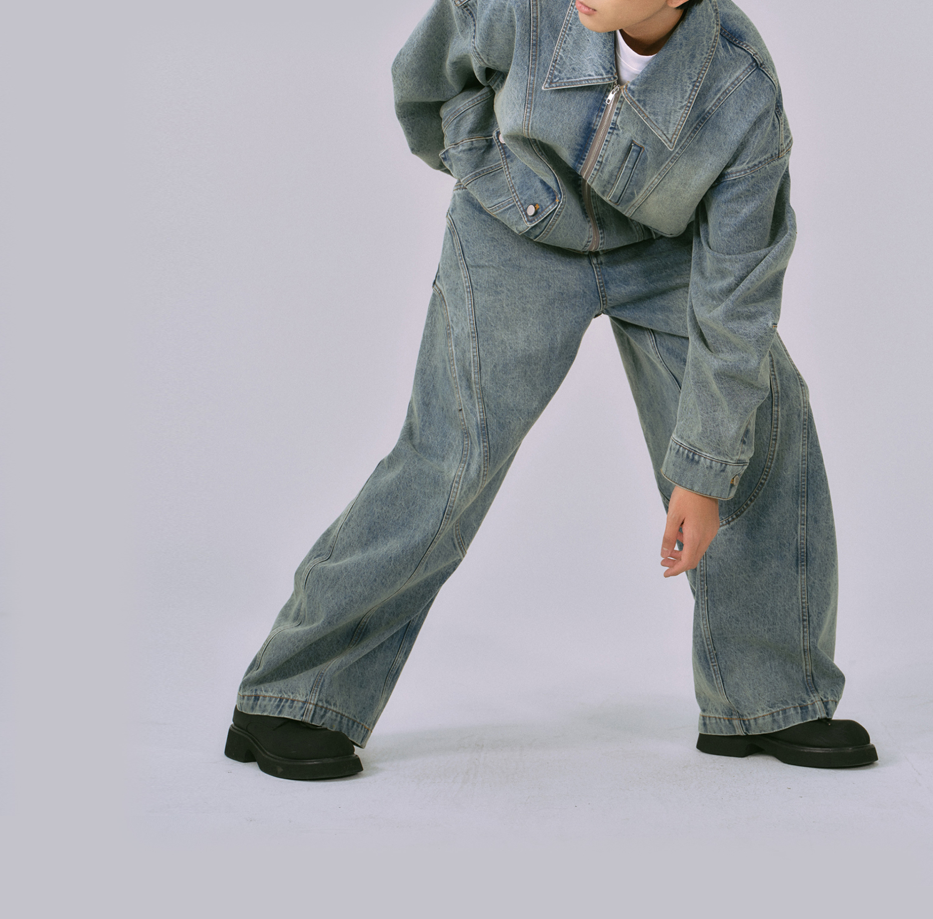 Heavy-Duty Washed Denim: Durable fabric with a unique washed effect for a vintage appeal.